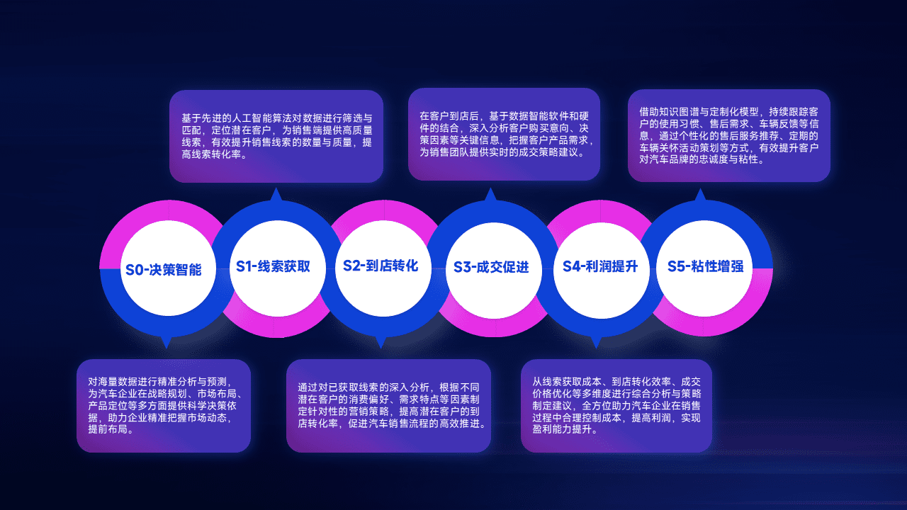 通过拓宽潜在客户来源、、优化线索分配并提高到店转化率,,,,以增强销售效率。。。同时,,,利用线索数据不断优化分析模型,,有效提升转化率,,,扩大营销影响力。。。。